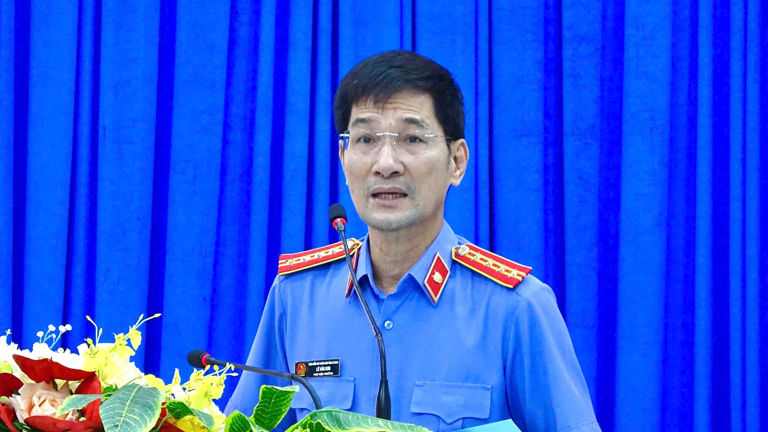 Đồng chí Lê Văn Sơn, Phó Viện trưởng VKSND tỉnh Cà Mau phát biểu khai mạc